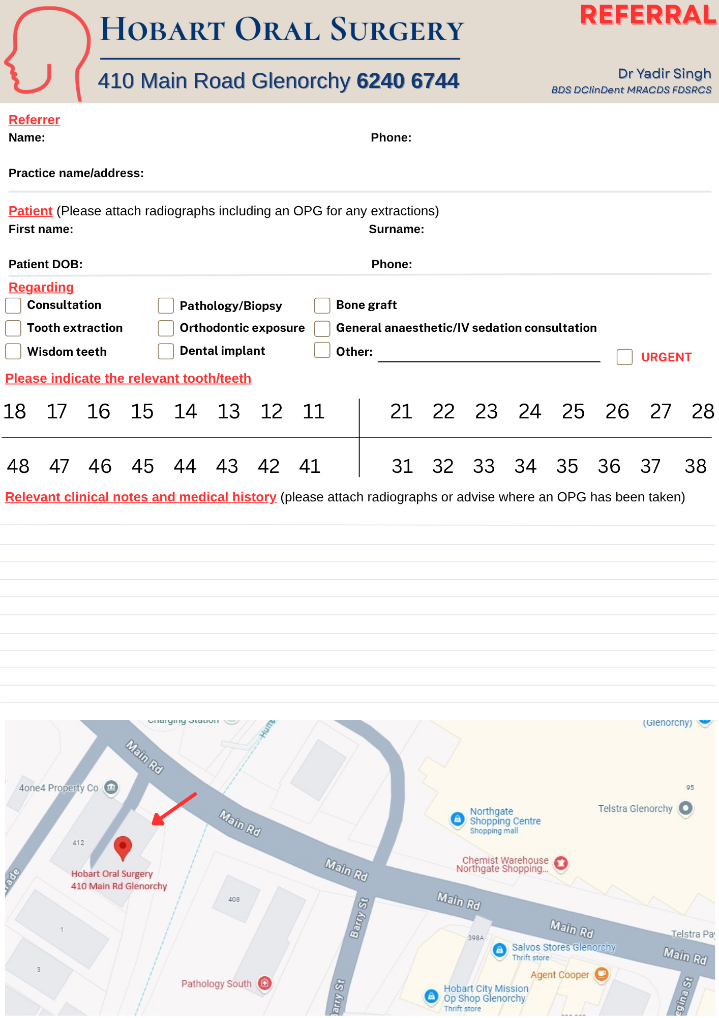 Download Referral Please download and print the referral form from the button above or this link (Print Referral) or simply send an email from your own Patient Management Software Email referrals to admin@hobartoralsurgery.com.au